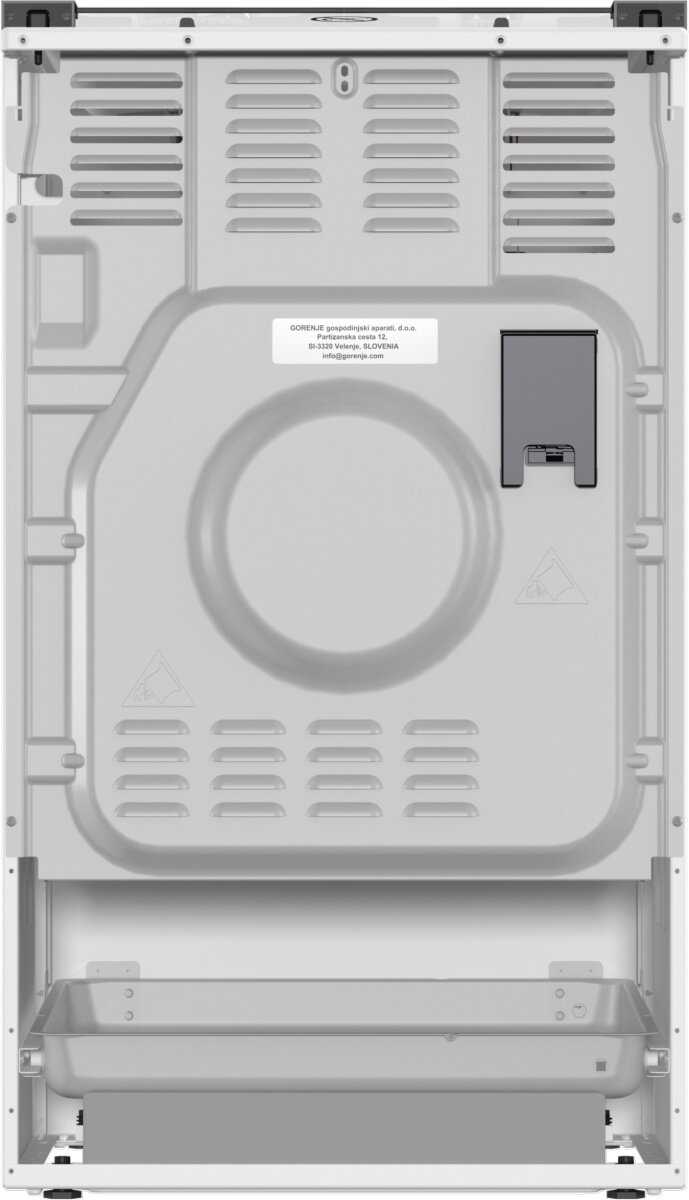 Плита оснащена рядом практичных элементов. Стеклянная крышка варочной панели не только придает эстетичный вид, но и защищает конфорки от загрязнений, когда плита не используется. Встроенный выдвижной ящик в нижней части предназначен для хранения посуды и аксессуаров, таких как противни и решетки. Подсветка духовки мощным светильником обеспечивает хорошую видимость блюд во время приготовления без необходимости открывать дверцу. -