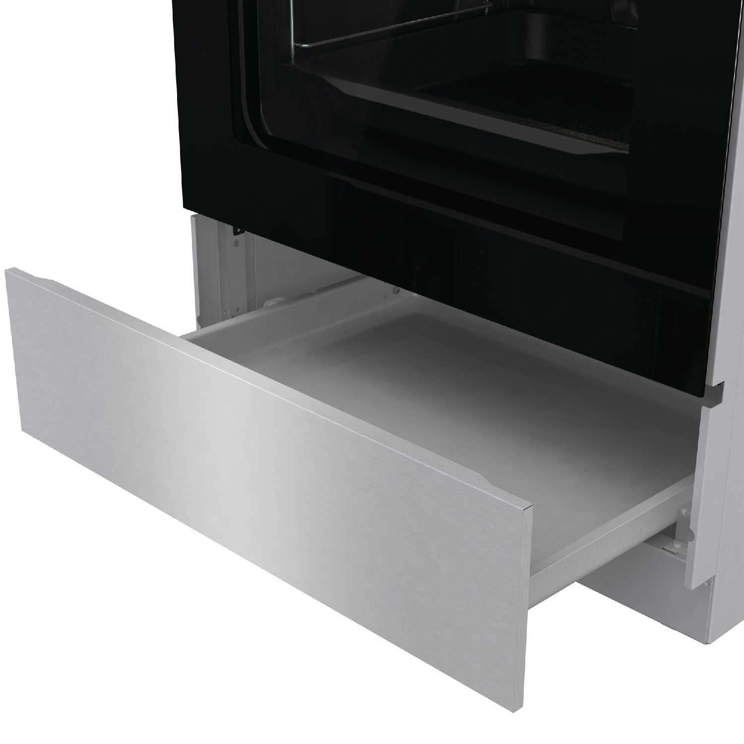 - Выдвижной ящик внизу для посуды добавляет практичности.