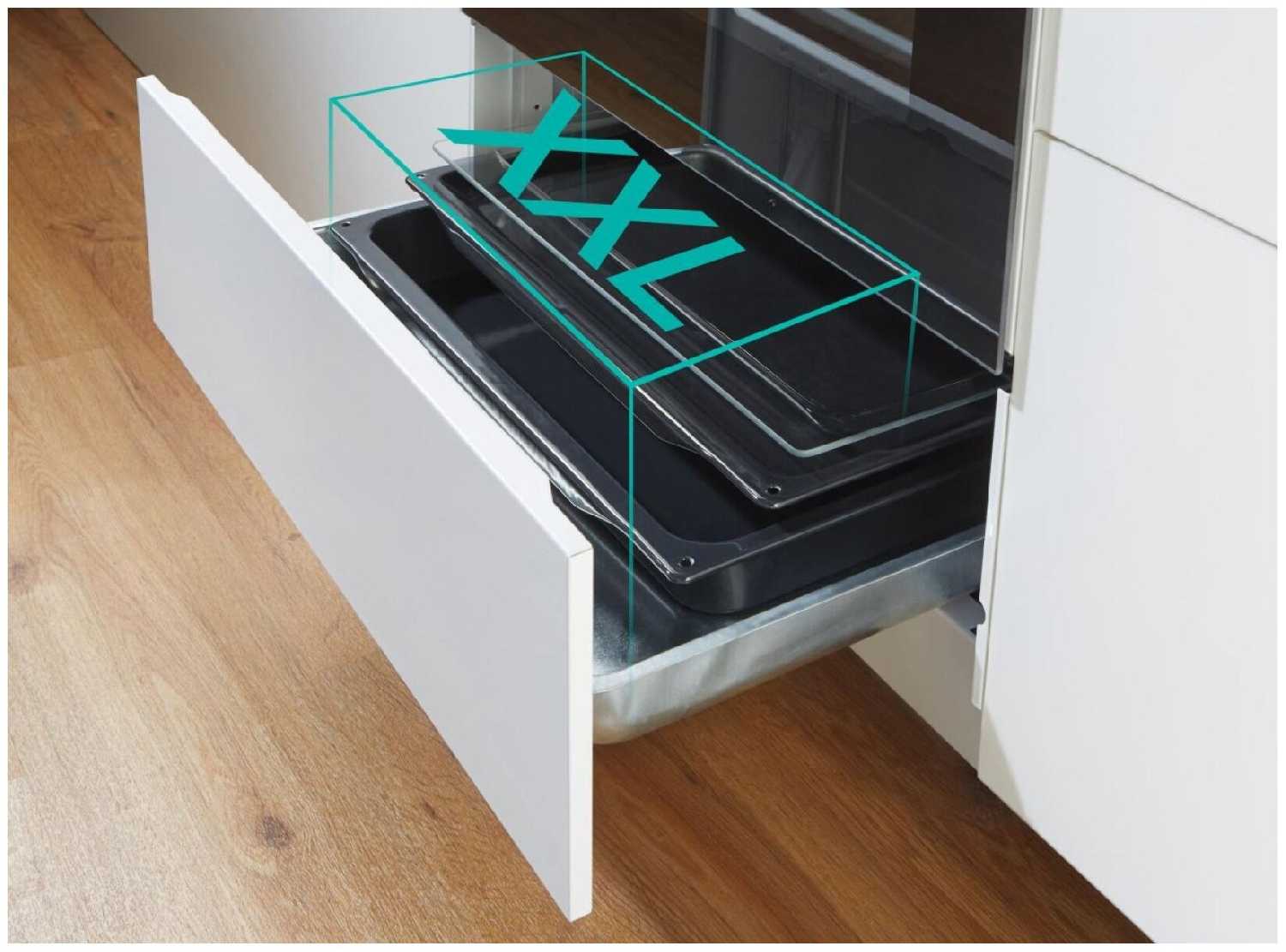 - Выдвижной ящик внизу не нагревается даже при температурах выше 200°C.
