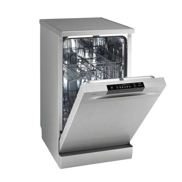 - Несмотря на ширину 45 см, машинка вмещает до 10-13 комплектов посуды, включая крупные предметы like кастрюли и сковородки.