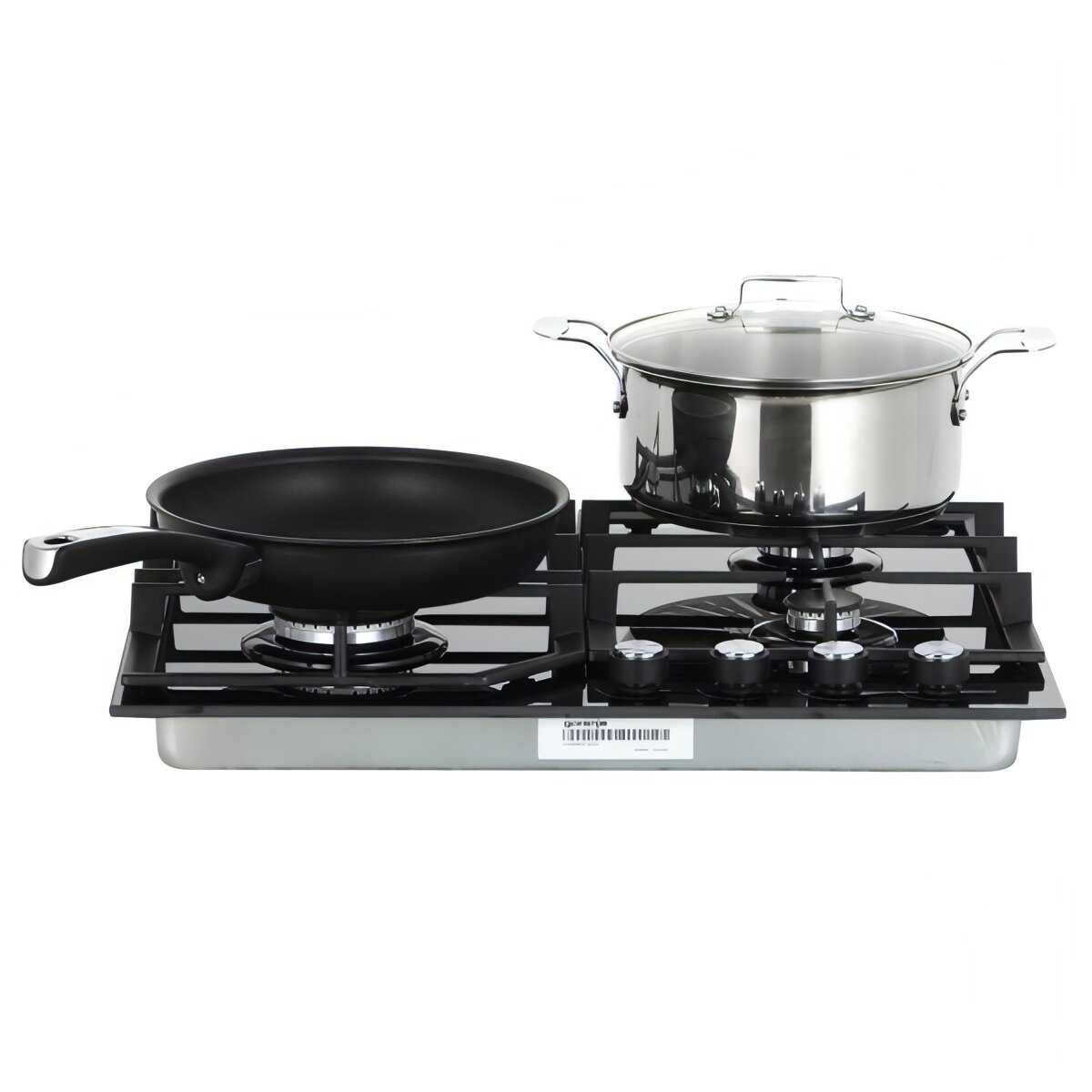 Конфорки расположены на достаточном расстоянии друг от друга, что позволяет одновременно использовать крупные кастрюли и сковороды. Пользователи подчеркивают, что даже 6-литровая посуда не мешает соседним горелкам. -