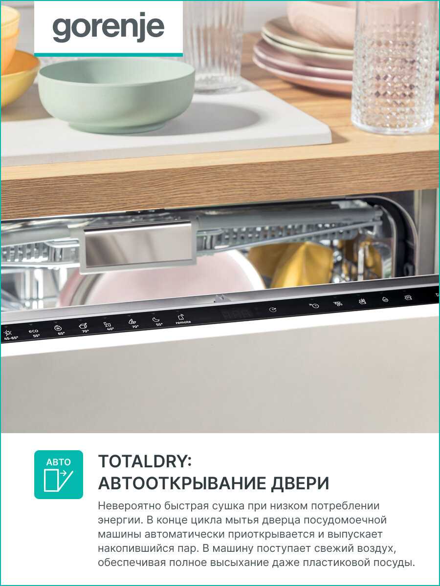 - + Автооткрывание дверцы, 3 полка для столовых приборов, экономичная, регулируемый второй лоток