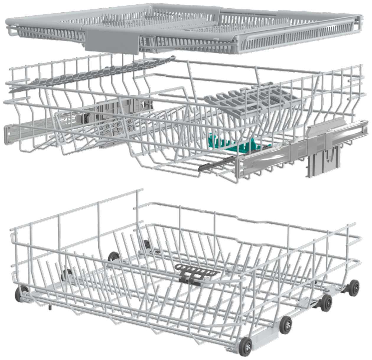 - + Программы разные, с разной температурой воды и общим временем. Все работают с отсрочкой. Понравился прочный материал, из которого сделаны корзины, короче под тяжестью большой посуды типа сковородок корзины не прогинаются.