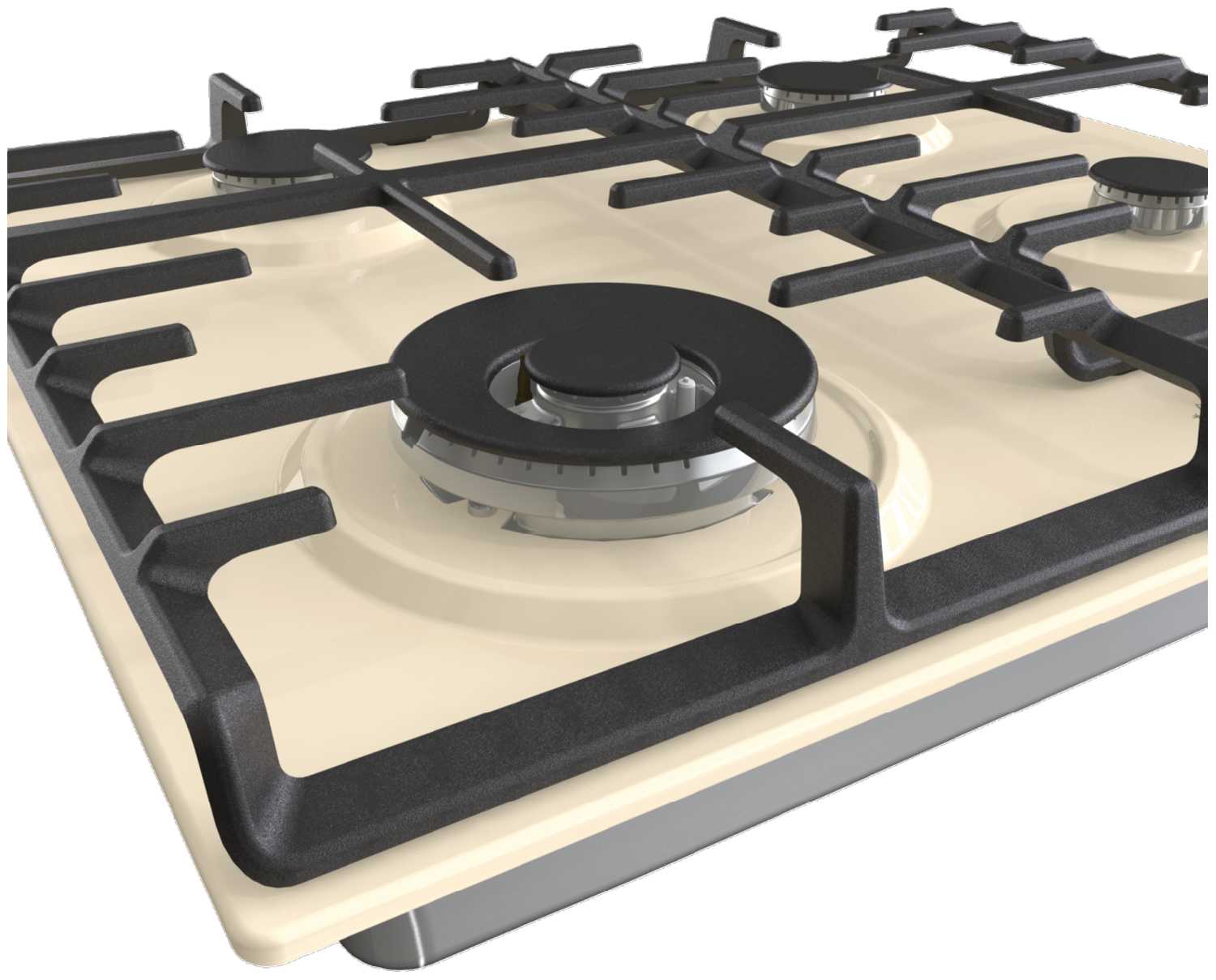 Я купила новую кухню в бежевых тонах, белая или черная панель никак не подходили и тут я нашла в магазине бежевую газовую панель, отлично вписалась в мою кухню, гармонично. Чугунные решетки выглядят стильно, имеется автоматический электроподжиг. Эмаль прекрасного качества, легко отмывается, не пористая. Решетки крепкие, съемные. Есть двухконтурная конфорка, здесь скорость разогрева космическая, советую