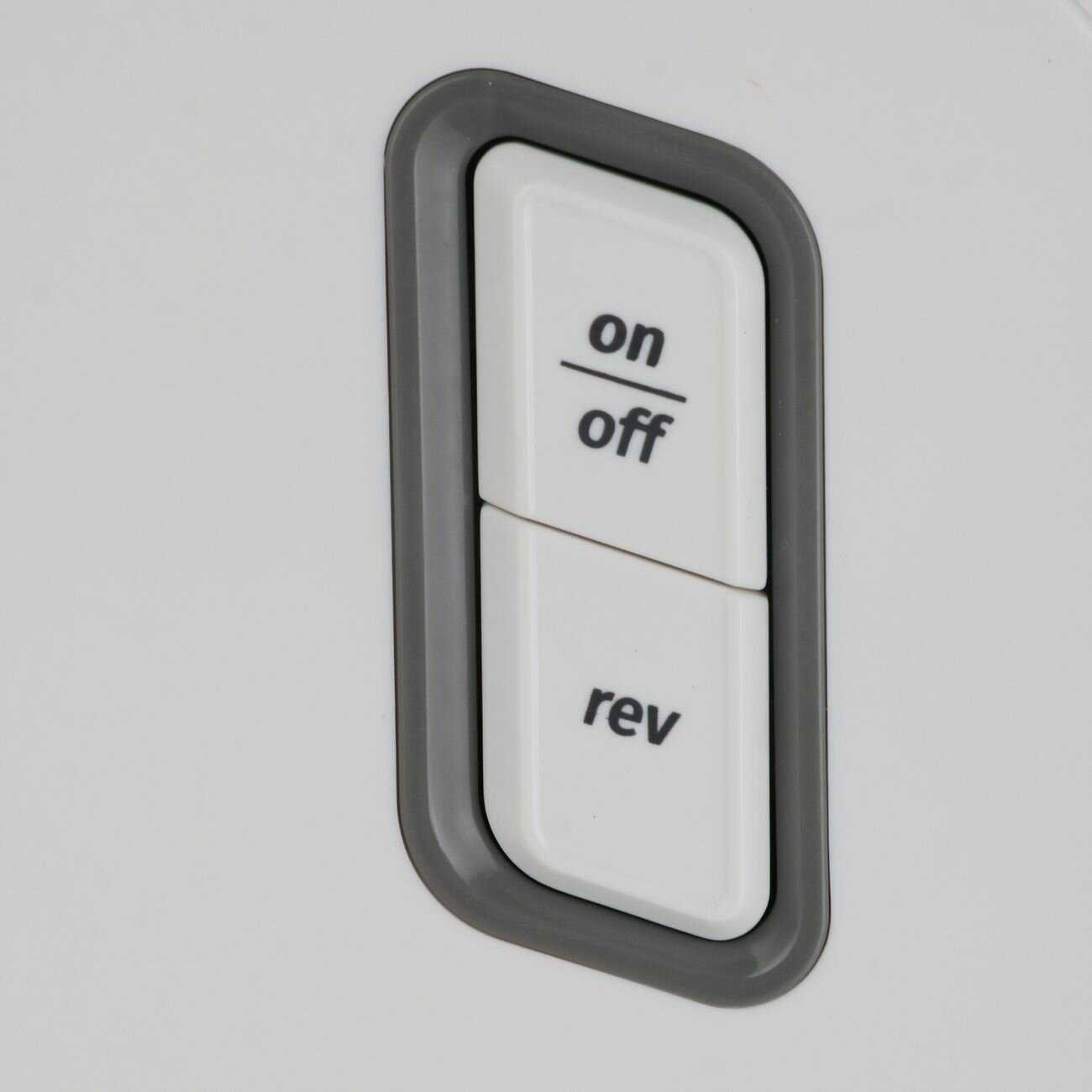 - Кнопка обратного хода мгновенно устраняет засоры без разборки конструкции.