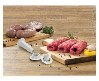 - В комплекте: две решетки (4 мм и 8 мм), насадка для колбасок диаметром 22 мм.