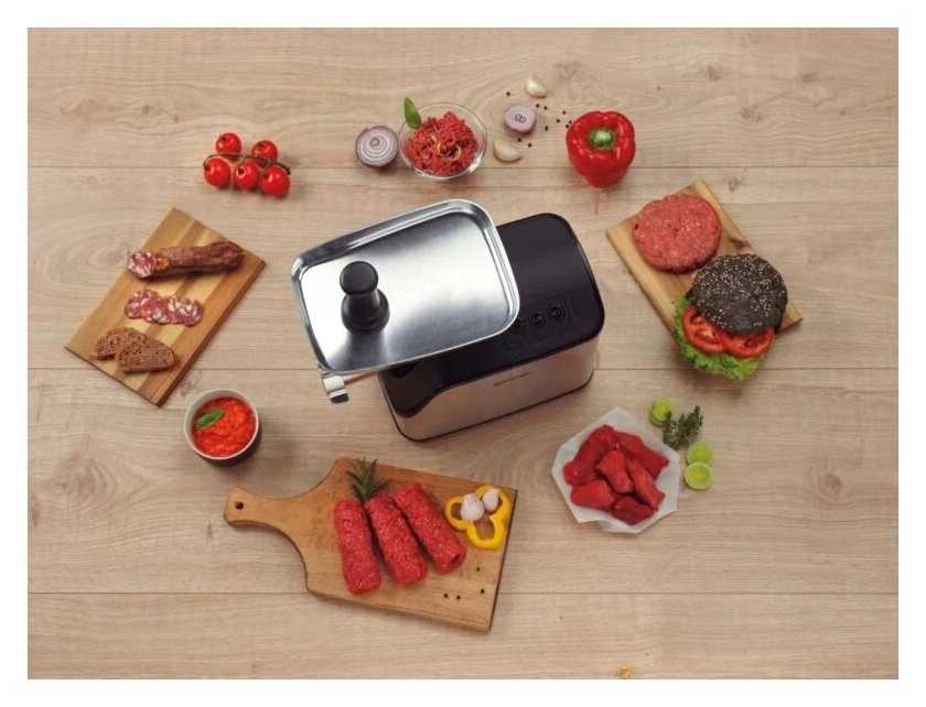 Тихая, рубит и режет любое мясо, даже не подмороженное. Никакого мусора, типа тёрок, в комплекте нет. Решетки хранятся отдельно, никакой грязи. Сборка качественная, нигде никакого люфта нет.