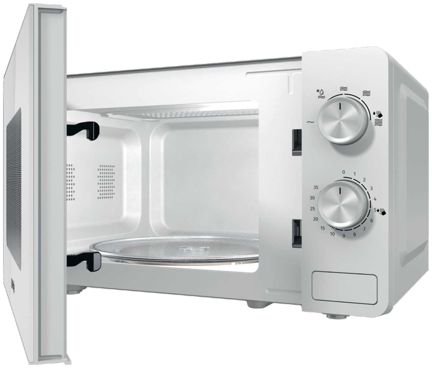- Съёмное стеклянное блюдо толщиной 4 мм моется в посудомоечной машине, а закруглённые углы камеры предотвращают скопление грязи.
