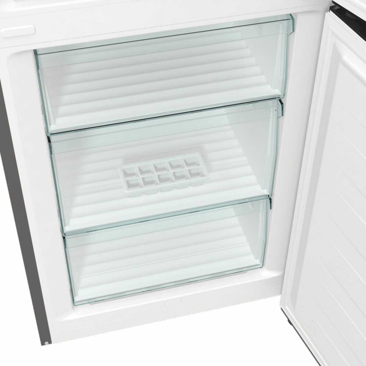 - Морозильная камера с тремя выдвижными ящиками обеспечивает равномерное распределение замороженных продуктов, облегчая поиск и минимизируя риск повреждения содержимого при извлечении.