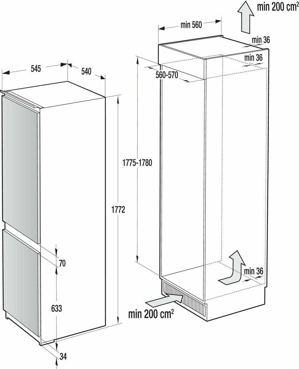 Встроил при ремонте кухни. Схема 70/30 - литража хватает с головой. С функцией No Frost забыл про разморозку. Инверторный компрессор еле слышно.