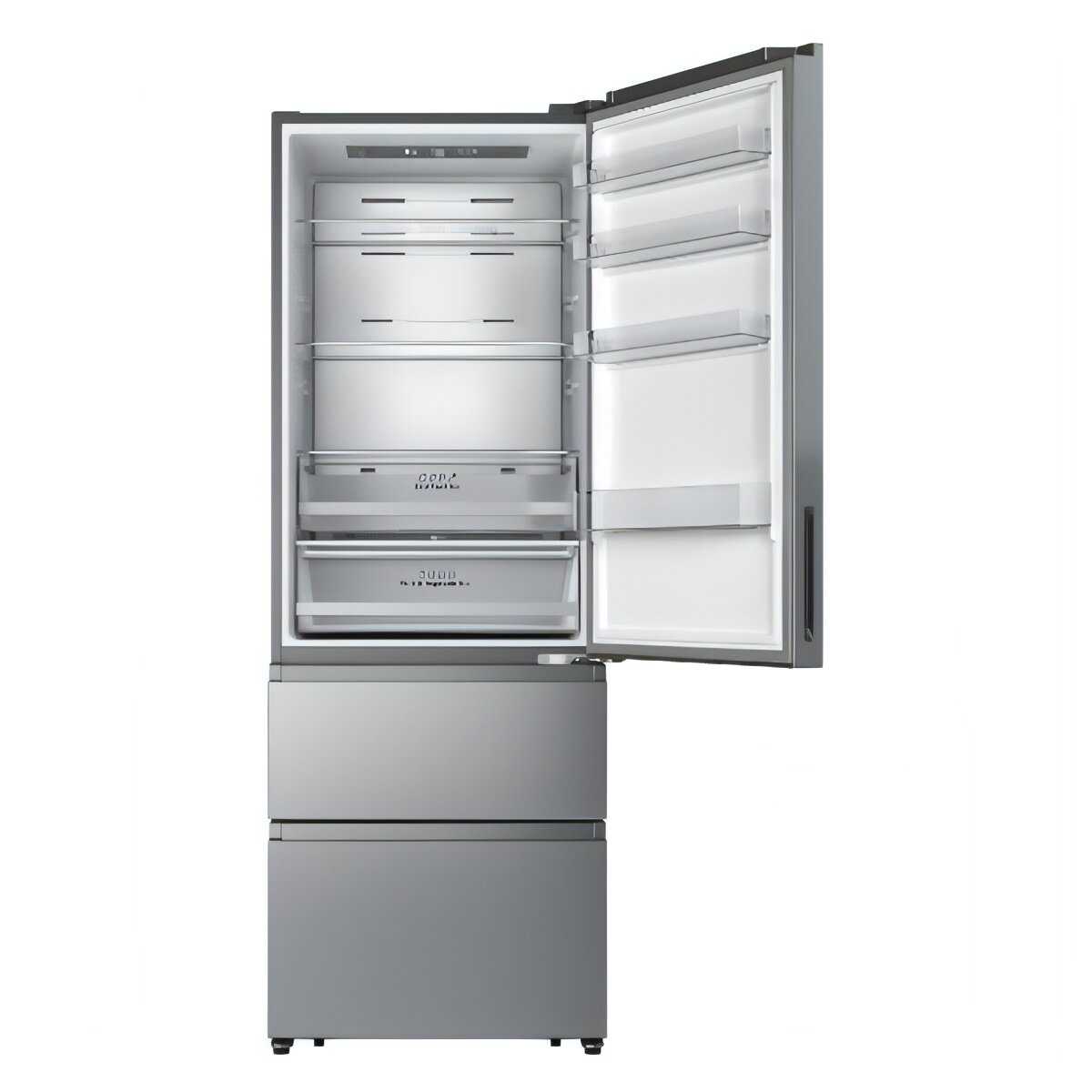 - Высокие ящики вмещают крупные контейнеры, а система No Frost исключает образование наледи, упрощая обслуживание.