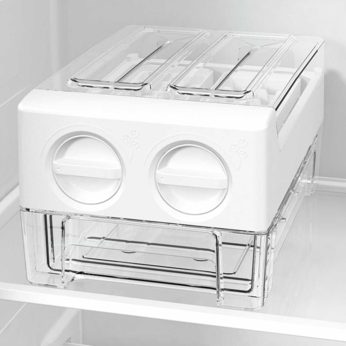 Прозрачные выдвижные ящики и регулируемые стеклянные полки обеспечивают хорошую видимость содержимого. Однако некоторые пользователи отмечают недостаточное количество полок в базовой комплектации и невозможность докупить оригинальные аксессуары. -