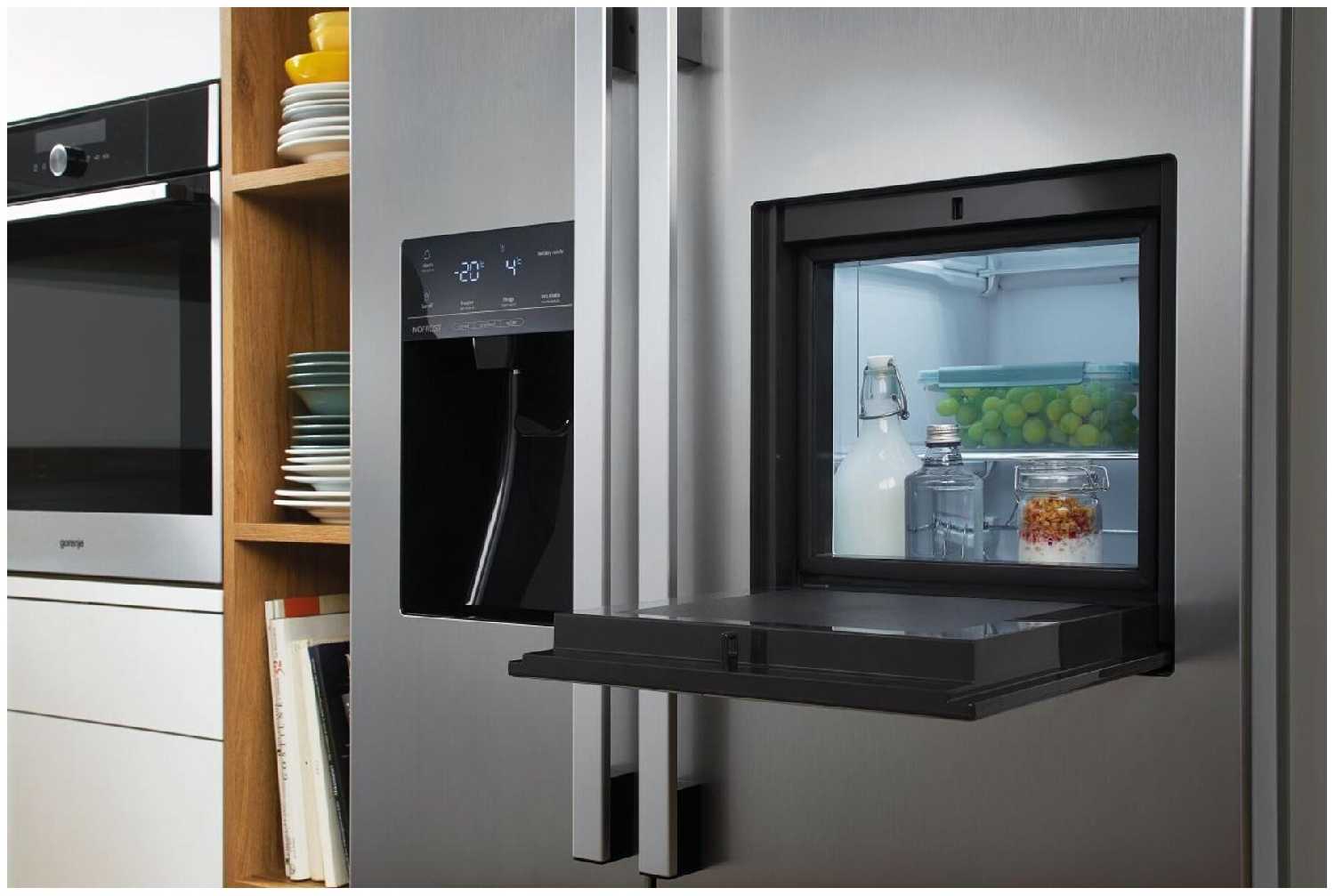 - Холодильная камера имеет зону свежести для овощей/фруктов и отдельный мини-бар для часто используемых продуктов, что снижает частоту открытия основной двери.