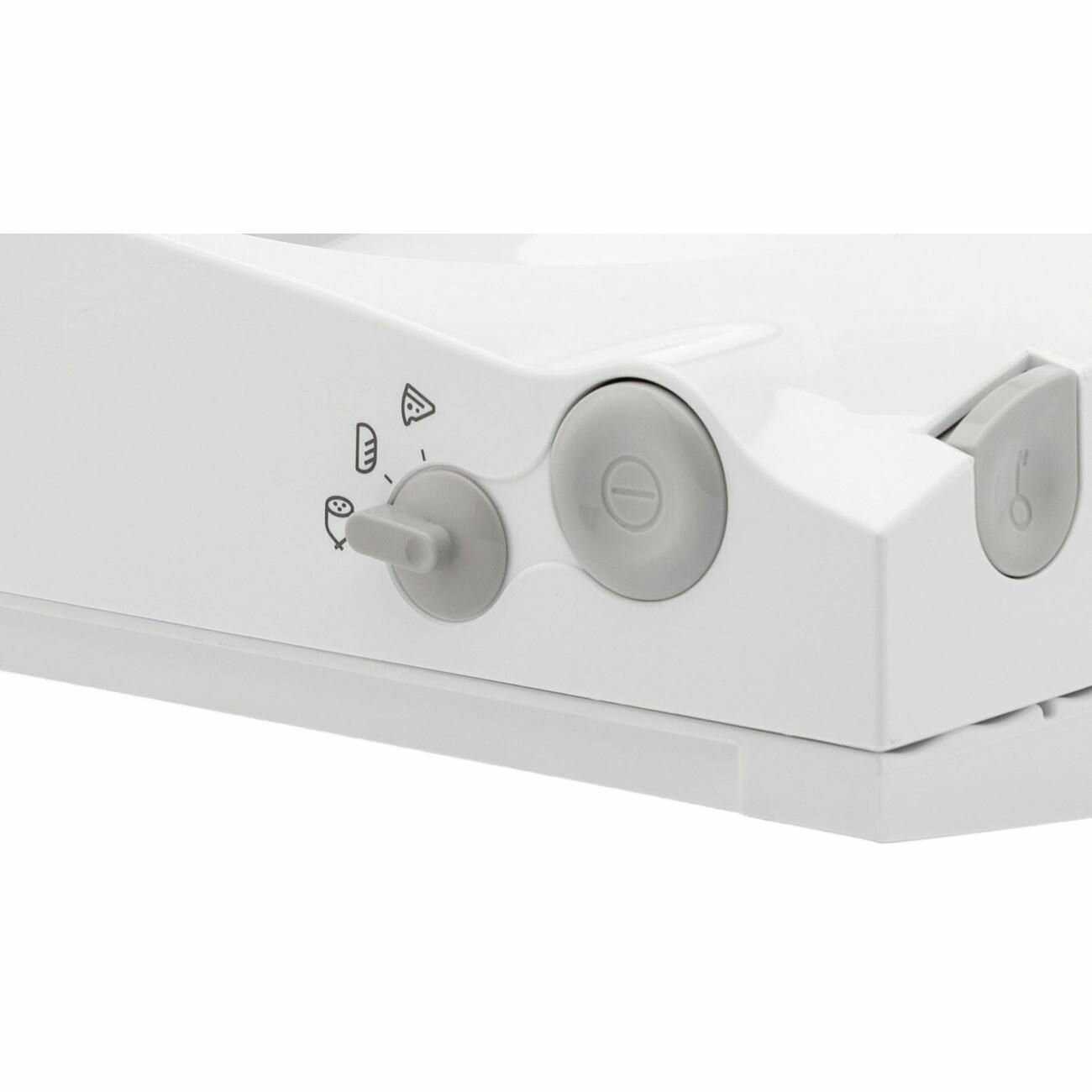Грезила ломтерезкой давно и вот наконец-то удалось приобрести. Зачётная, работает хорошо и без нареканий. Основной плюс - это прочный корпус, не хлипкая, как попадались до этого. Благодаря острым ножам ломтики получаются ровные, возможно регулировать толщину, практично и удобно, теперь всегда на столе красивая нарезка!