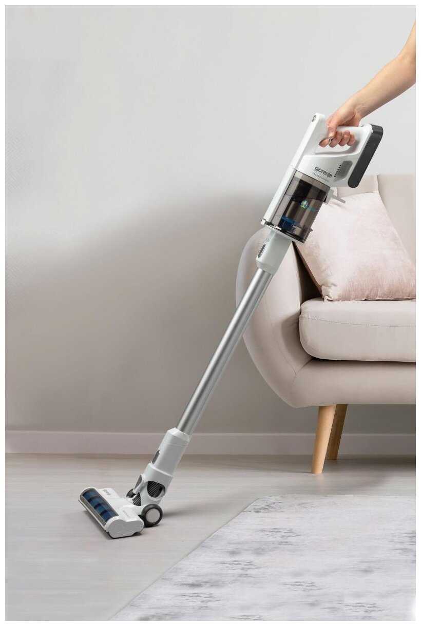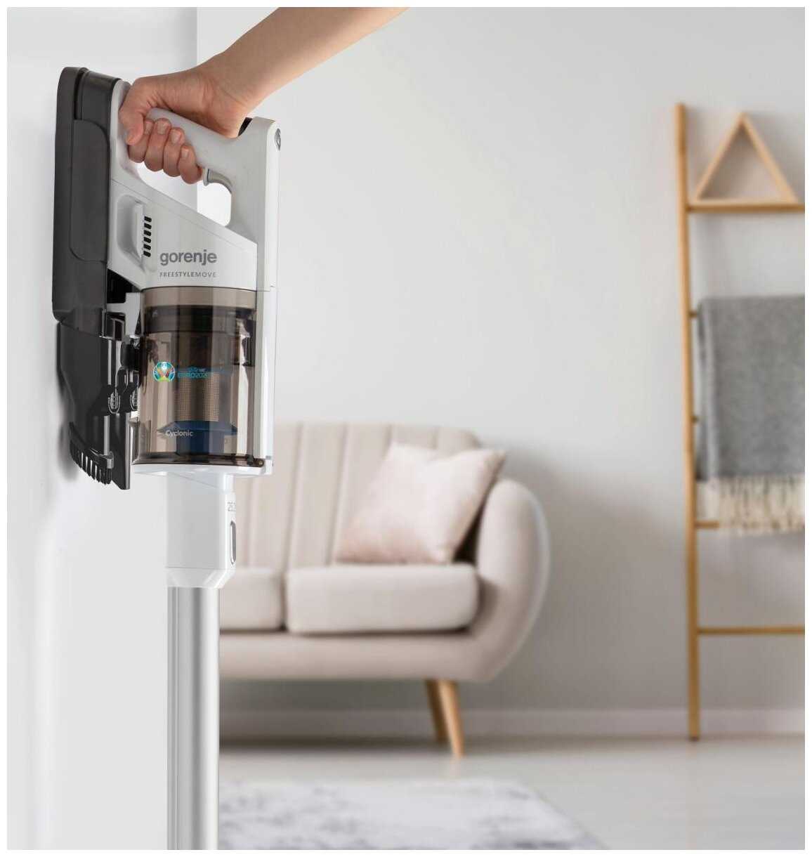 Вертикальный пылесос Gorenje получил высокие оценки за легкость управления и эргономичный дизайн. Пользователи отмечают, что его вес (около 2,6 кг) позволяет убираться без усталости в руках, а компактная конструкция с настенным креплением экономит место. Маневренность щетки — один из ключевых плюсов: она поворачивается на 180 градусов, что упрощает уборку под мебелью и в узких углах. Резиновые колеса обеспечивают плавное движение по полу, а фиксация кнопки включения избавляет от необходимости постоянно её удерживать. Однако некоторые столкнулись с проблемой случайного включения при переносе из-за неудобного расположения кнопки. Для владельцев квартир до 80 м² заряда аккумулятора хватает на 40–45 минут работы, но в трёшках или при активном использовании турборежима этого недостаточно. Подсветка насадки помогает видеть пыль в затемненных зонах, но у части моделей диоды перегорали через несколько недель эксплуатации.