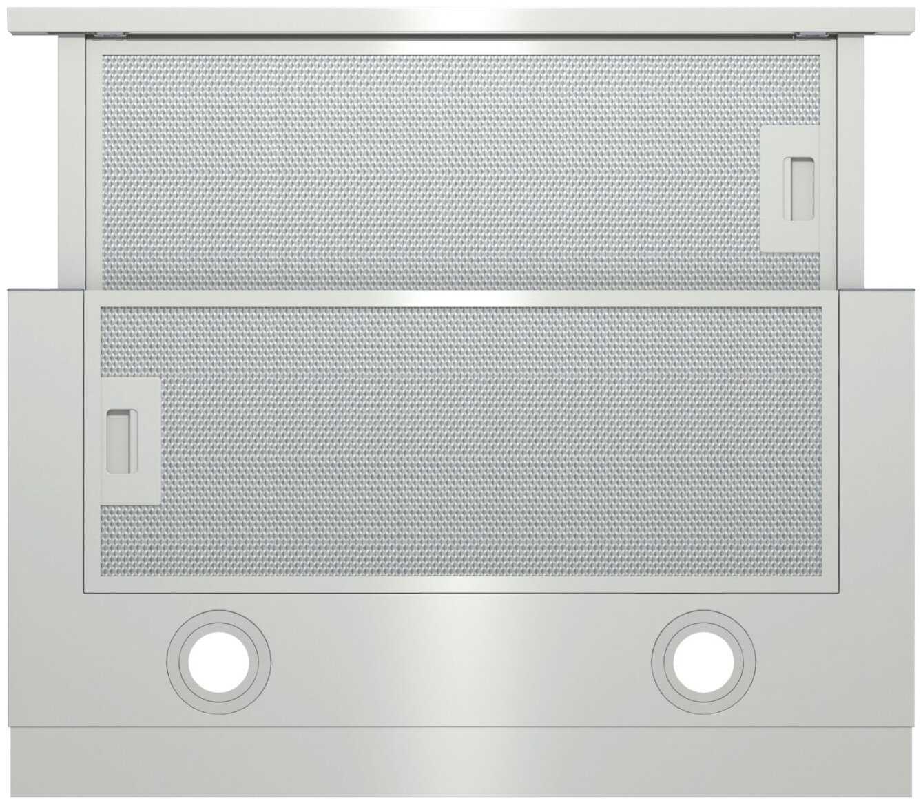 Вытяжка встраиваемая. Подходит для любого цвета и типа кухонной мебели, торчит полоской из-под гарнитура. Серебристая отделка канта хорошо гармонирует с натуральной древесиной и пластиком. Удобное кнопочное управление – без заморочек с цифровыми панелями и пультами.