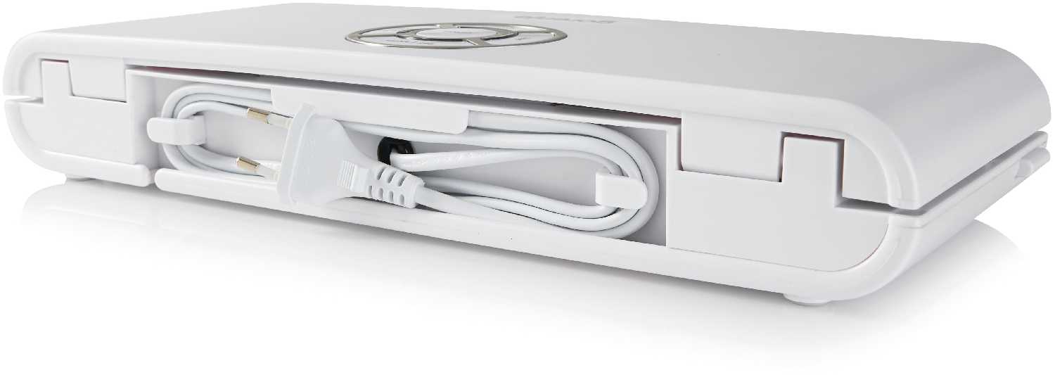 - Встроенный отсек для шнура и пакетов предотвращает потерю аксессуаров.