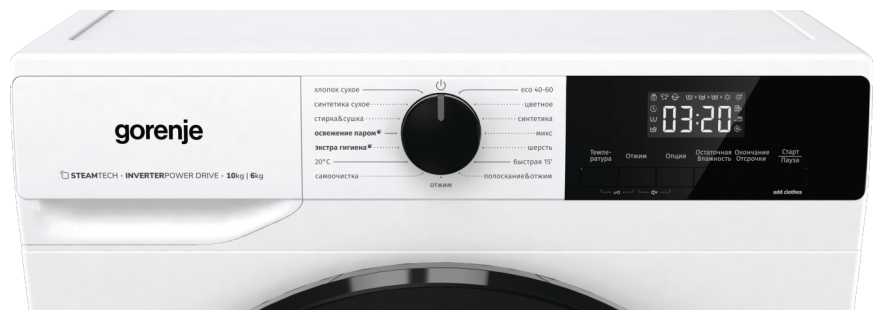 - Ручная корректировка температуры и времени отжима для разных типов тканей.