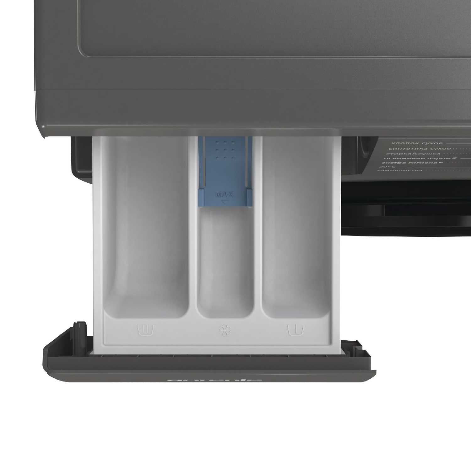 - Экономия воды за счёт точного дозирования на одну стирку при ручном контроле наполнения.