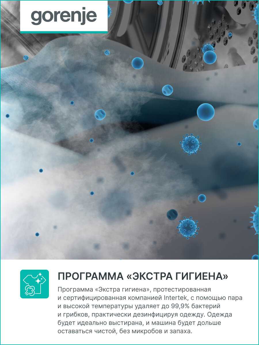 - Программа "Экстра гигиена" с обработкой паром обеспечивает глубокую очистку.
