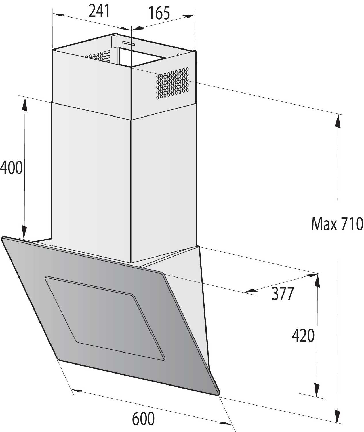 - Наклонная конструкция сокращает полезное пространство над варочной панелью.