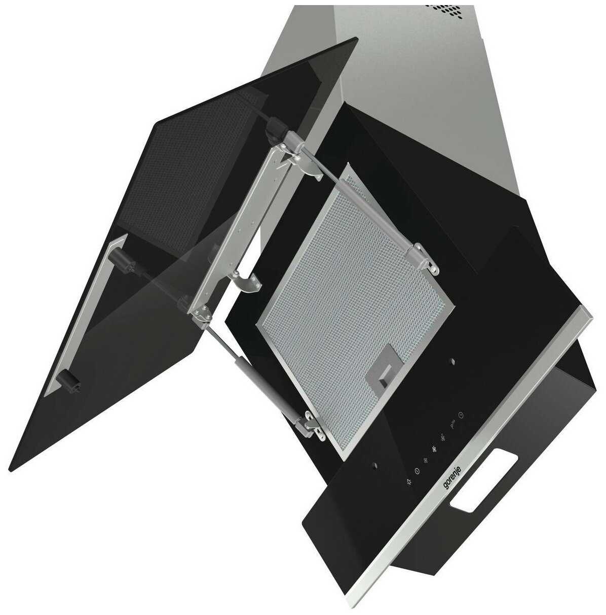 - Конструкция позволяет легко демонтировать стеклянную панель для замены внутренних фильтров.