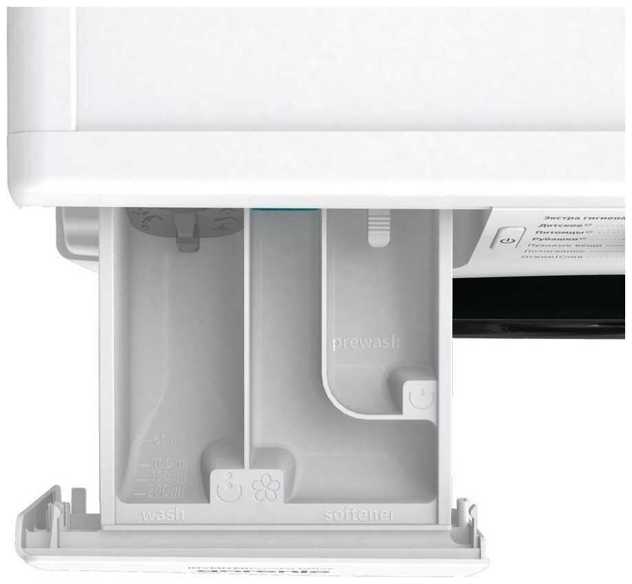 - Уровень шума — 48 дБ в режиме стирки, 72 дБ при отжиме (средние показатели для класса).
