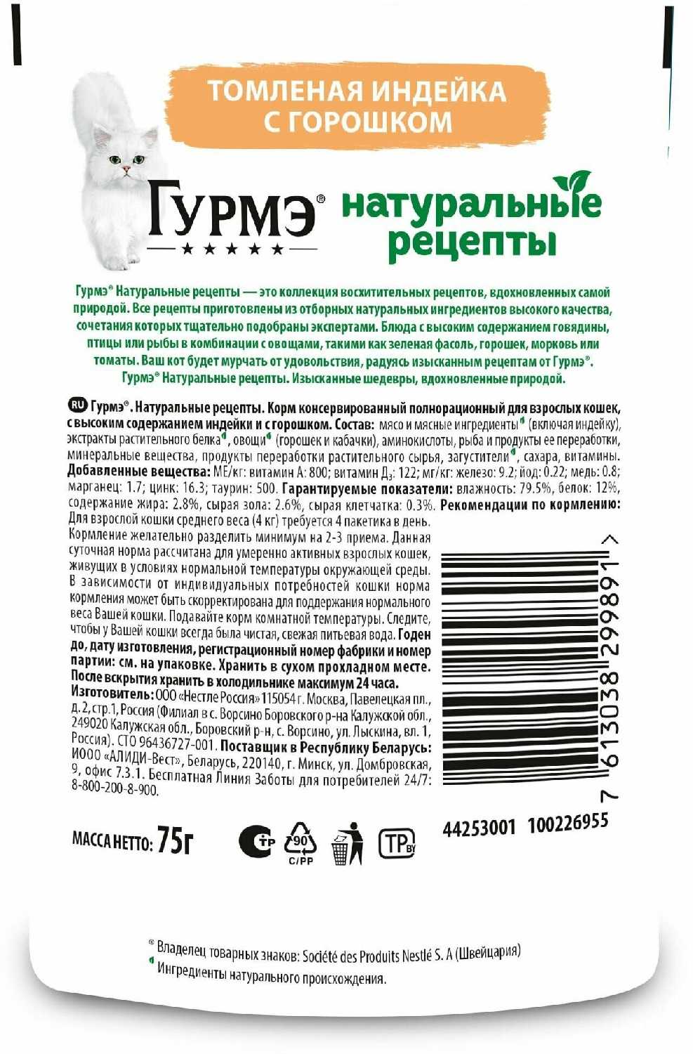 Отзывы о Корм для кошек Гурмэ Натуральные Рецепты томленая индейка с горошком