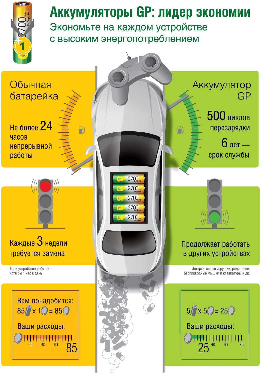 - Многолетний опыт пользователей (от 2-3 до 8 лет) подтверждает длительный срок службы аккумуляторов GP при сохранении заявленной емкости.
