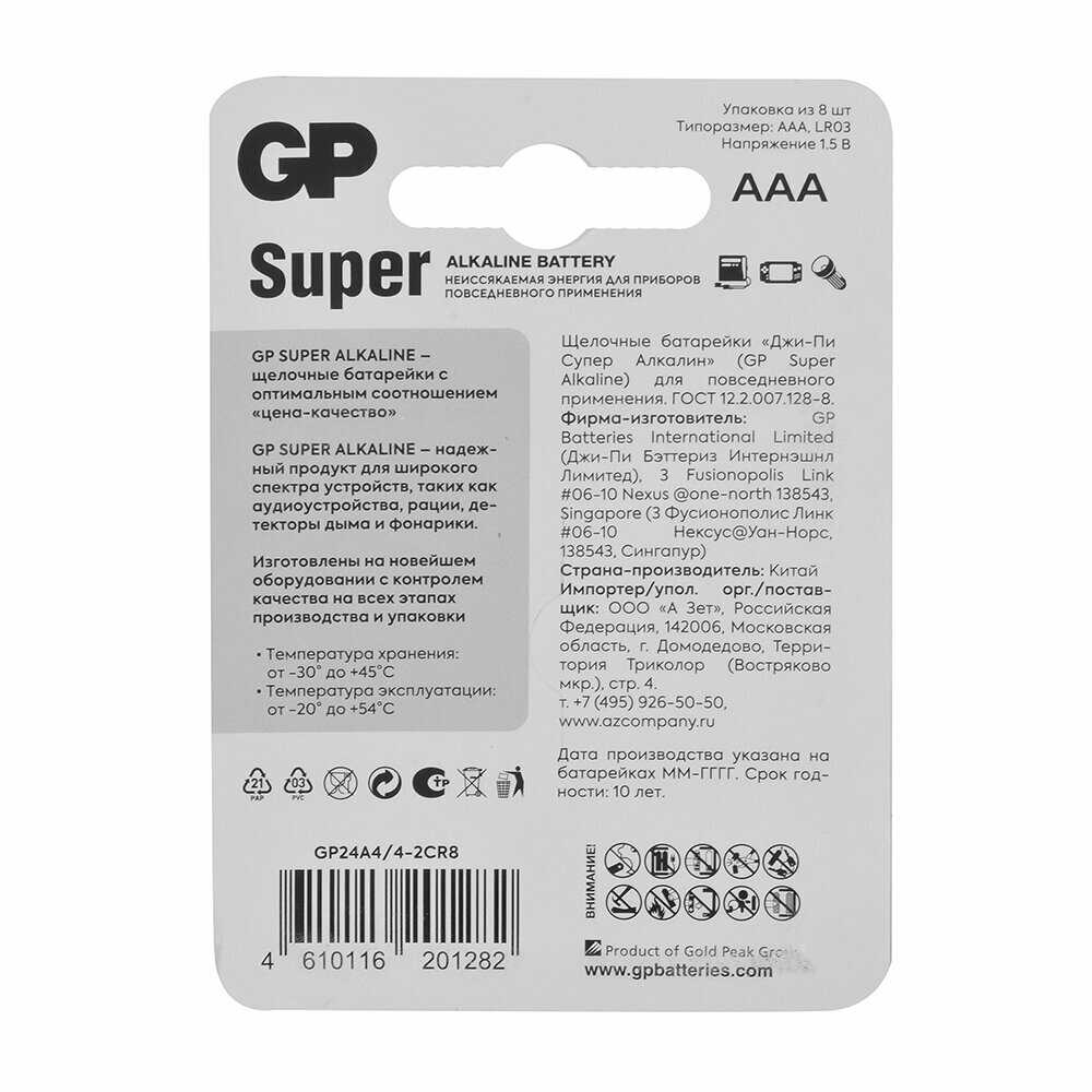 Характеристи GP ALKALINE SUPER AAA ( 24A4/4-2CR8)