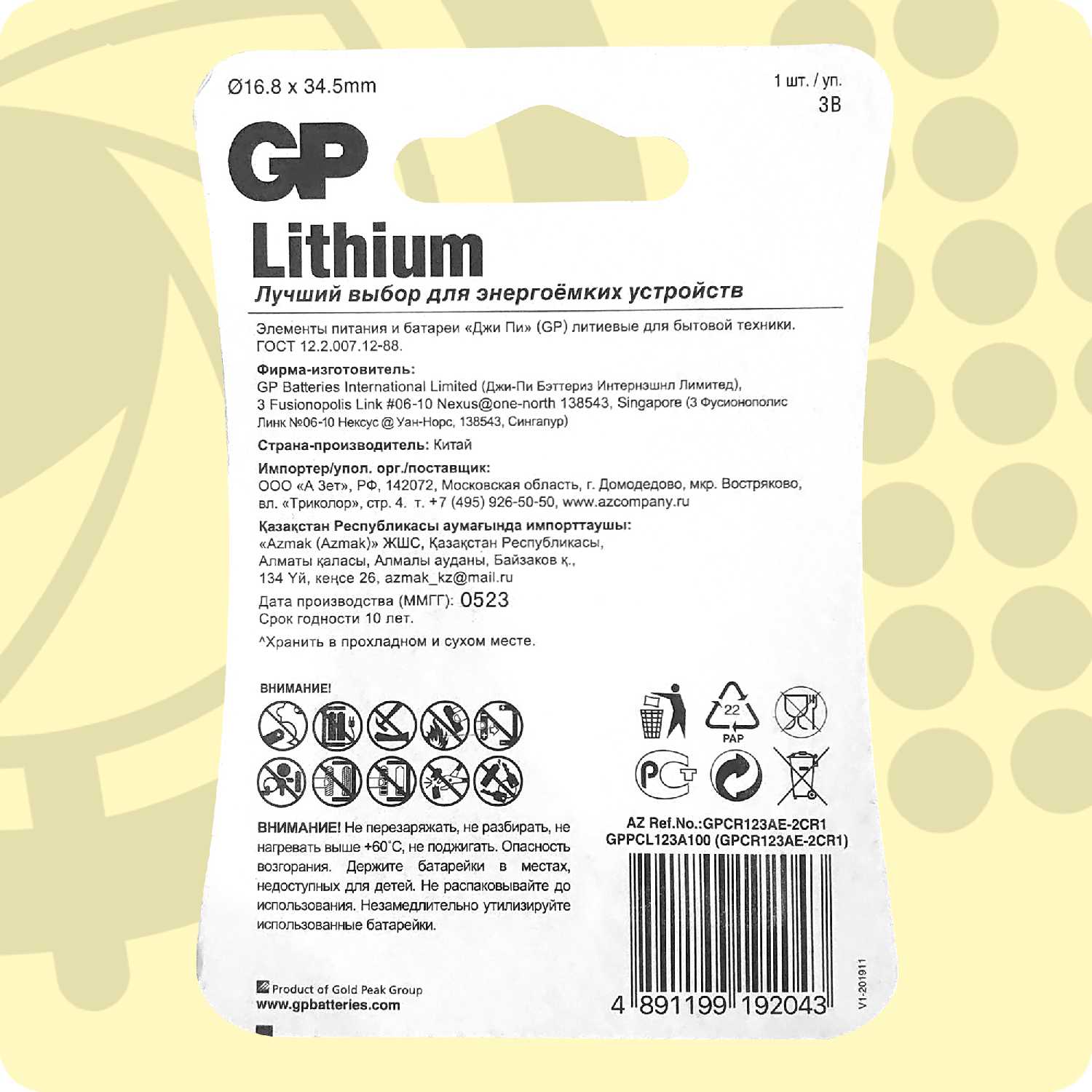 Обзор GP CR123A (Lithium)*: