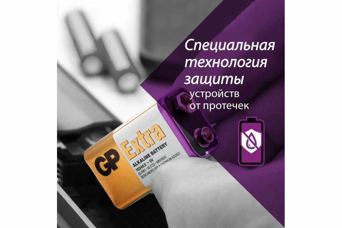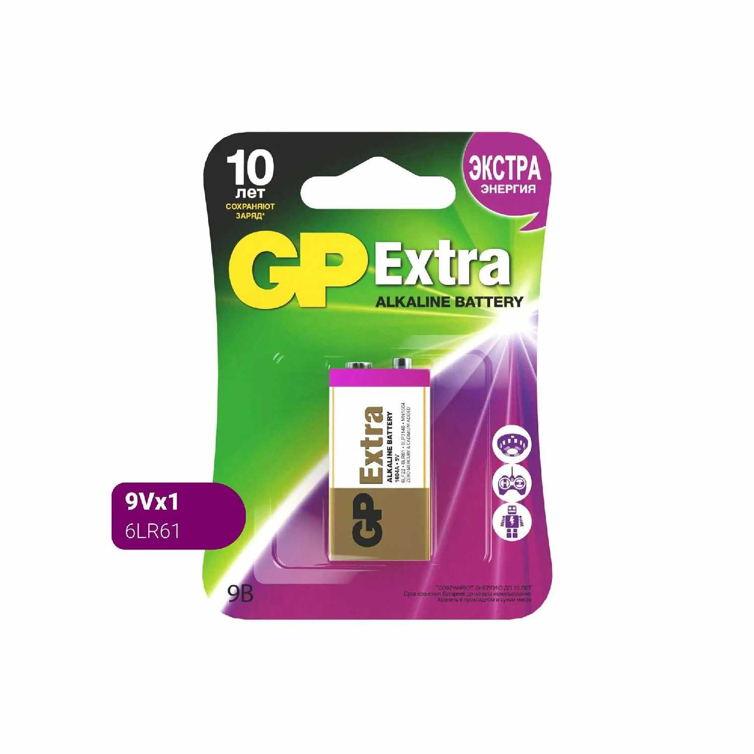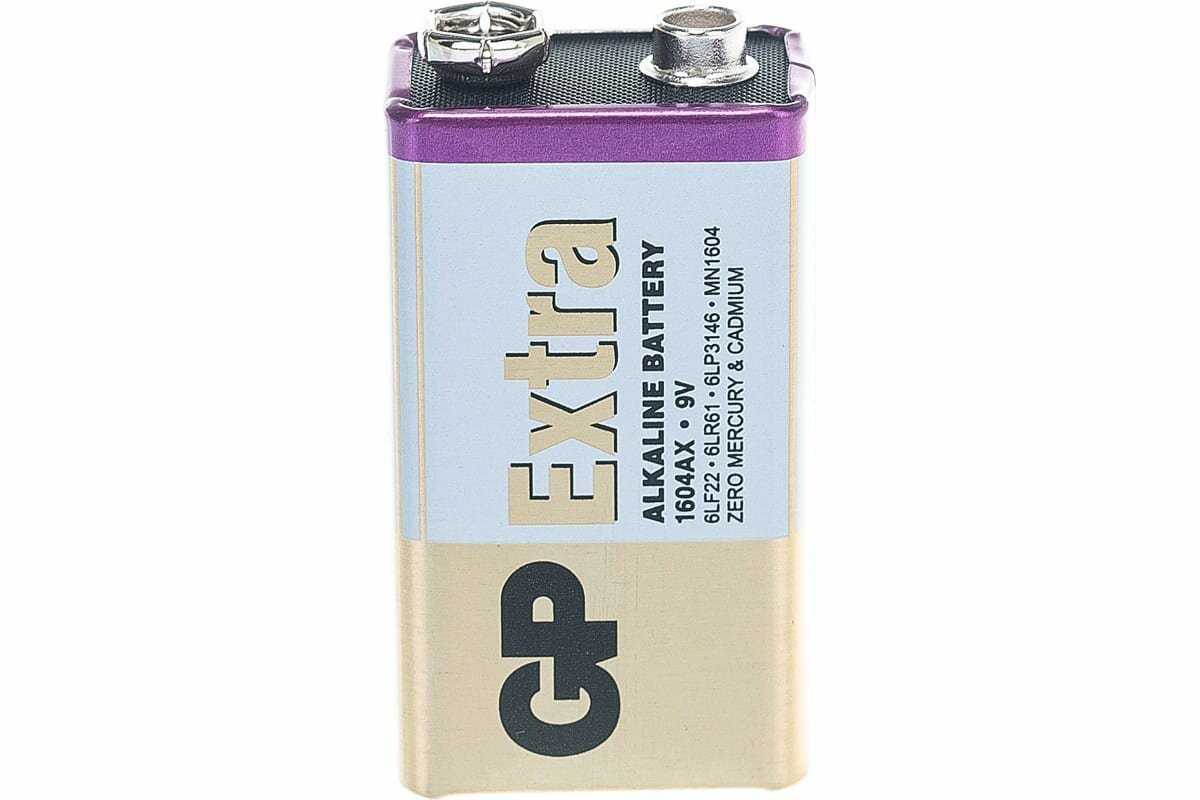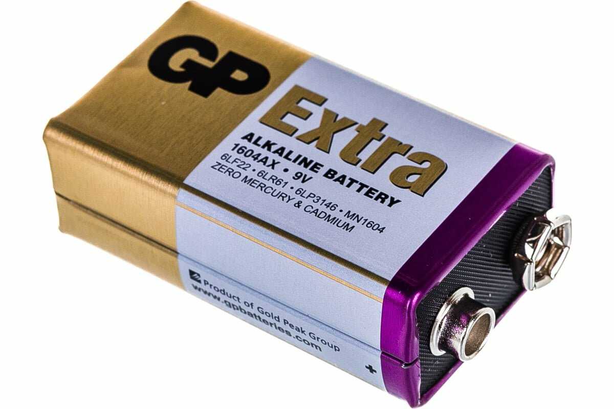 Батарейка GP Extra алкалиновая с большим рабочим напряжением в 9В.