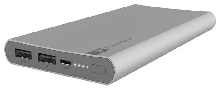 Тонкий, стильный, большая емкость, есть выходы на 1А и 2,1А.