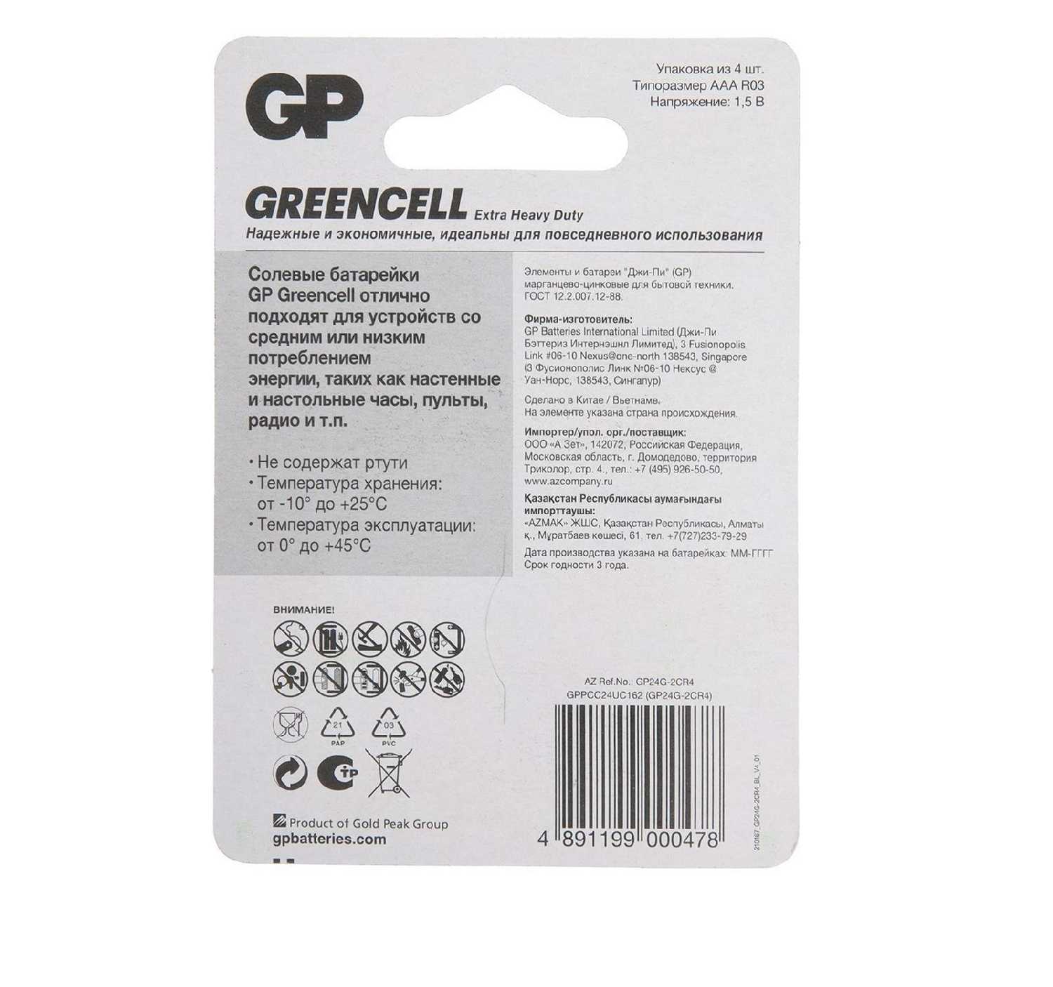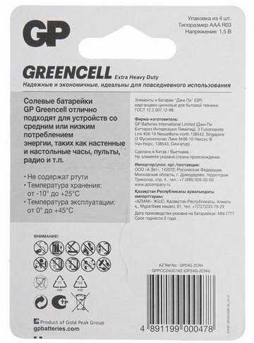 Типоразмер : | AA (R6, LR6, FR6, HR6, ZR6), AAA (R03, LR03, FR03, HR03, ZR03, MN2400) |