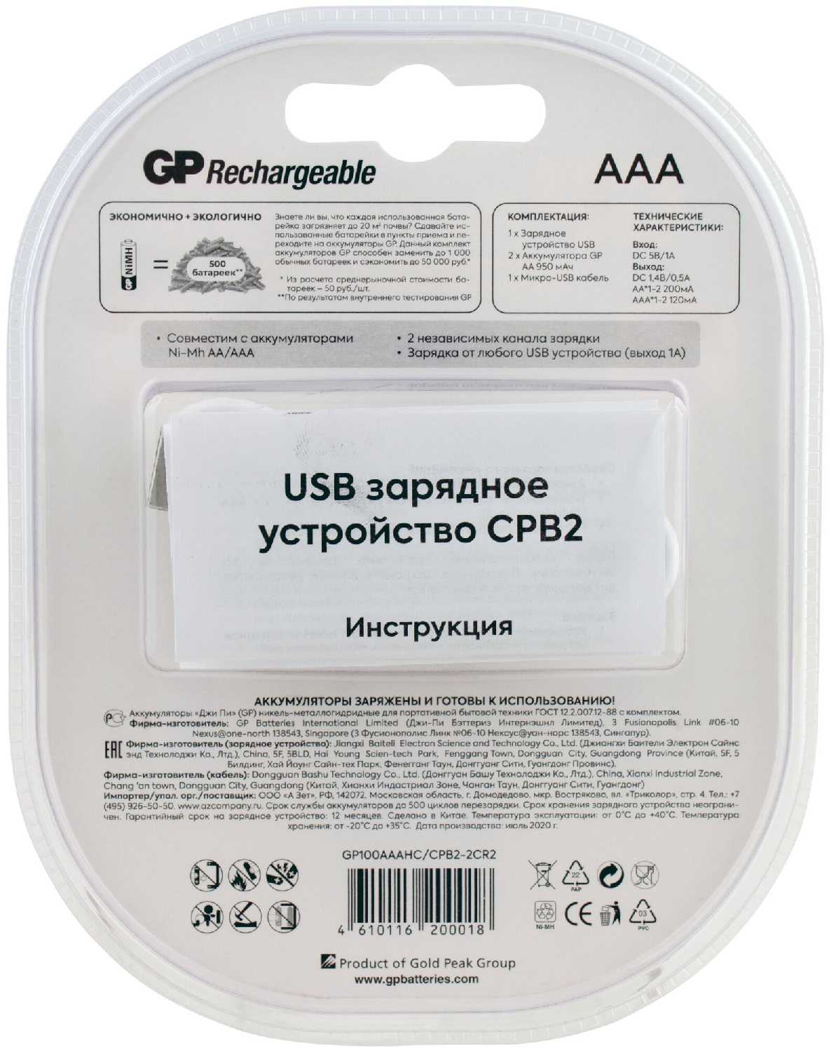 Зарядное устройство GP Rechargeable 1000 Series AAA — 531 отзывов, плюсы и минусы