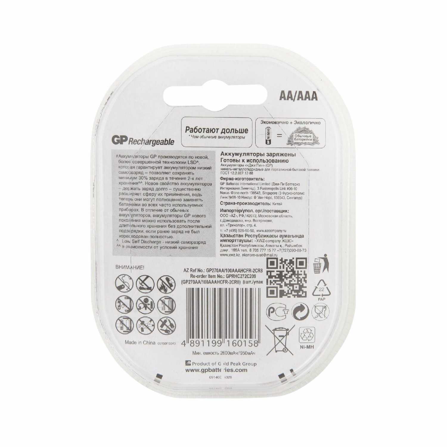 | Дополнительная информация : | Аккумуляторная батарейка GP AAA (HR03) Ni-Mh 2700 мАч 8 шт. |