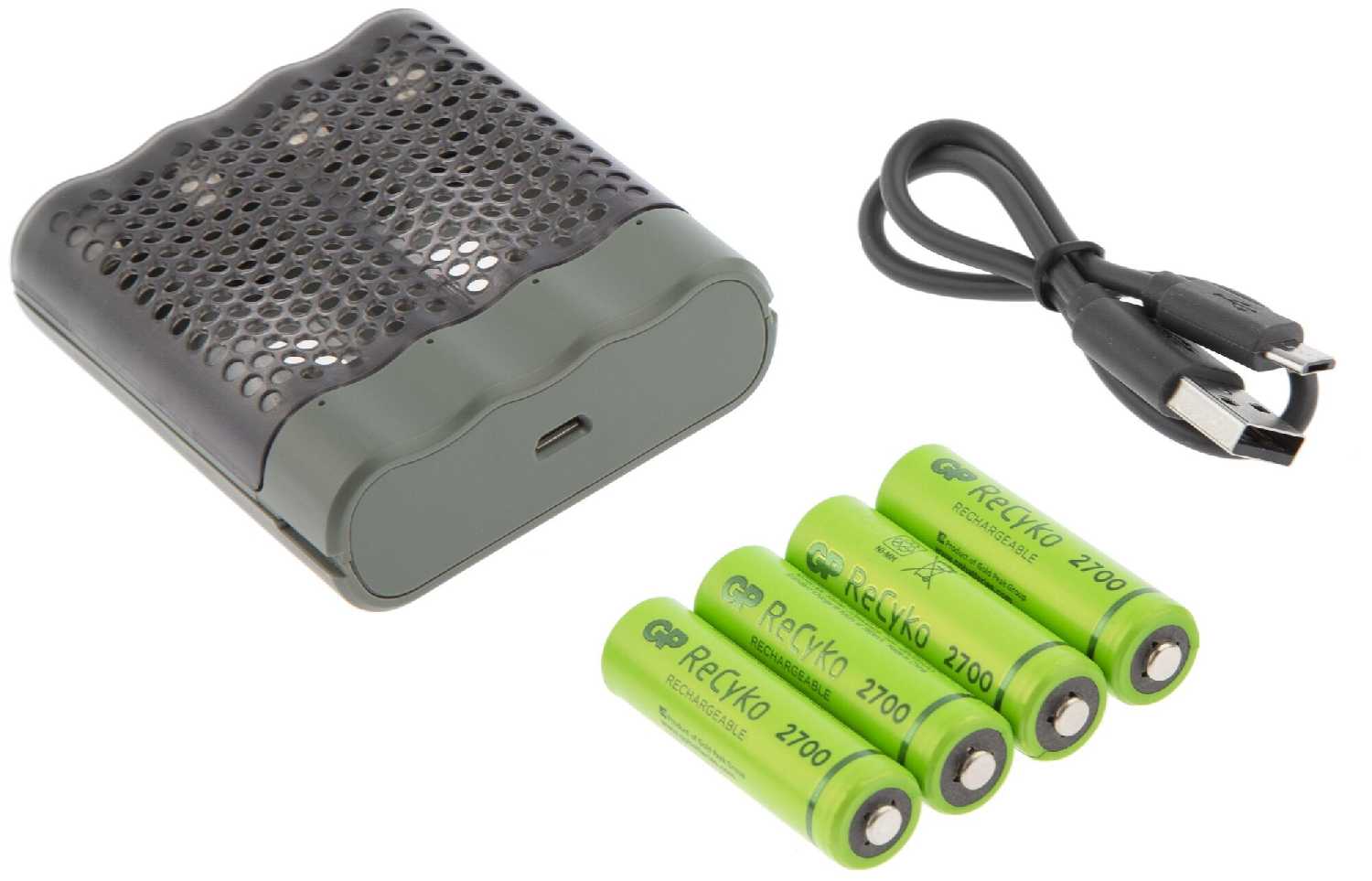 - + Информативный экран. Возможность зарядки аккумуляторов разных типов, причем одновременно. Питание через USB-C с зарядным устройством в комплекте. 4 аккумулятора AA в комплекте.