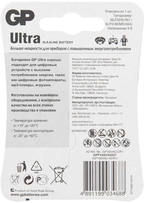 5 отзывов пользователей o GP Ultra Alkaline 9V