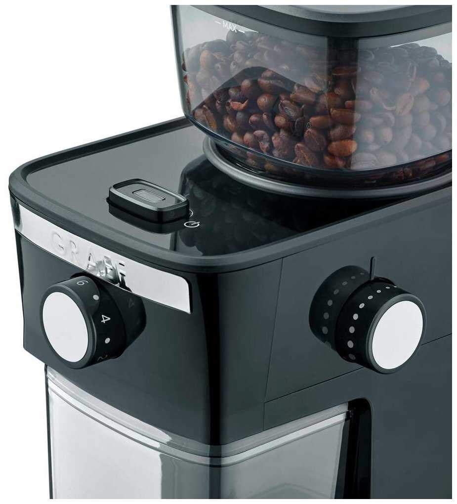 - + Цена, бренд, компактность, не сильно шумный, контейнеры с крышкой, пластик без запаха ( в отличии от всяких китфорт ), есть регулировка порций - х2 подходит для двойного рожка delonghi 685, качество помола средненькое (для своей цены норм).