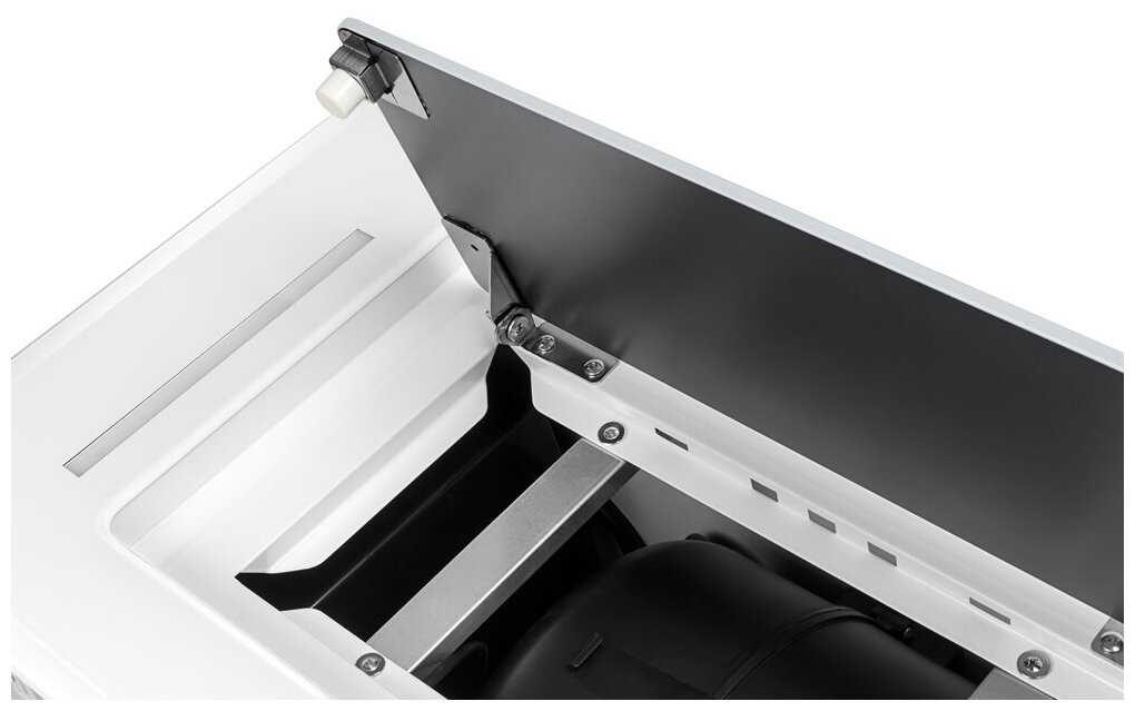 - + Вытяжка очень красиво смотрится на белой кухне. Удобно, что не надо искать никаких кнопок, достаточно просто взмахнуть рукой от себя и она сама включится. Ещё раз взмахнуть от себя и будет вторая скорость и т.д. Взмахнуть на себя и она выключится. Одним словом - чудо техники! Мощность хорошая, всасывает хорошо, весь пар уходит и не остаётся на дверце. Правда кастрюли всегда ставлю ближе к фартуку.