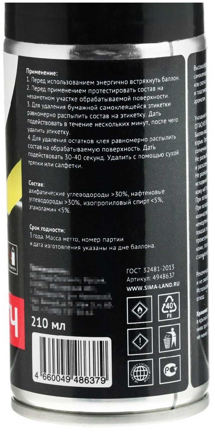 Состав : | алифатические углеводороды >30%, нафтеновые углеводороды >30%, изопропиловый спирт <5%, этаноламин <5% |
