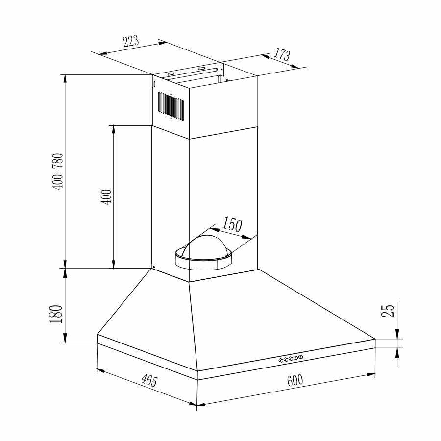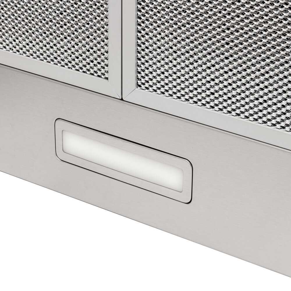 - Компактные, но не чрезмерно малые габариты делают вытяжку универсальной для большинства стандартных кухонь.