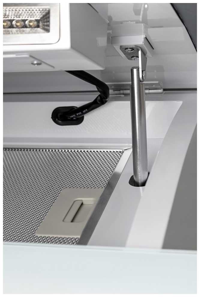- + тянет сильно . докупил еще угольные фильтры(не идут в комплекте) То как открывается дверца своя изюминка ,тоже плюс. поверхность стекло .