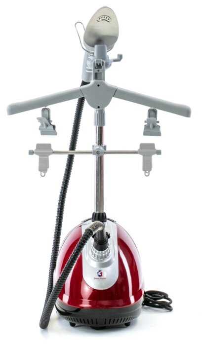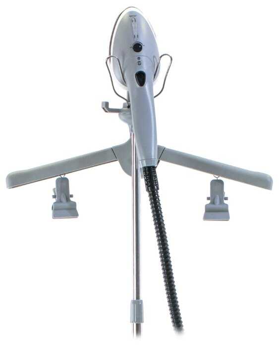 Им можно парить и в верхнем и в нижнем положении, есть щетка для ковров, можно обрабатывать мягкую мебель, что я опробовал в первую очередь. Довольно мощная раздвижная штанга, удобные складные плечики с прищепками для брюк. Аппарат на колесиках, легко перемещать. Очень мощная струя пара, термаварежка в комплекте выручает чтобы не обжечься =) При работе не вылетает никакого конденсата, для этого утюжок снабжен нагревательным элементом. Им так же можно с успехом гладить на доске, как обычным утюгом. Супруга оценила, при глажке штор прямо в развешенном состоянии. правда шланг коротковат шланга не хватает, пришлось ей помочь. Радует что есть в продаже комплектующие, конкретнее удлиненный шланг, правда цена оставляет желать, но шторы гладят не каждый день по этому пока обойдемся =)