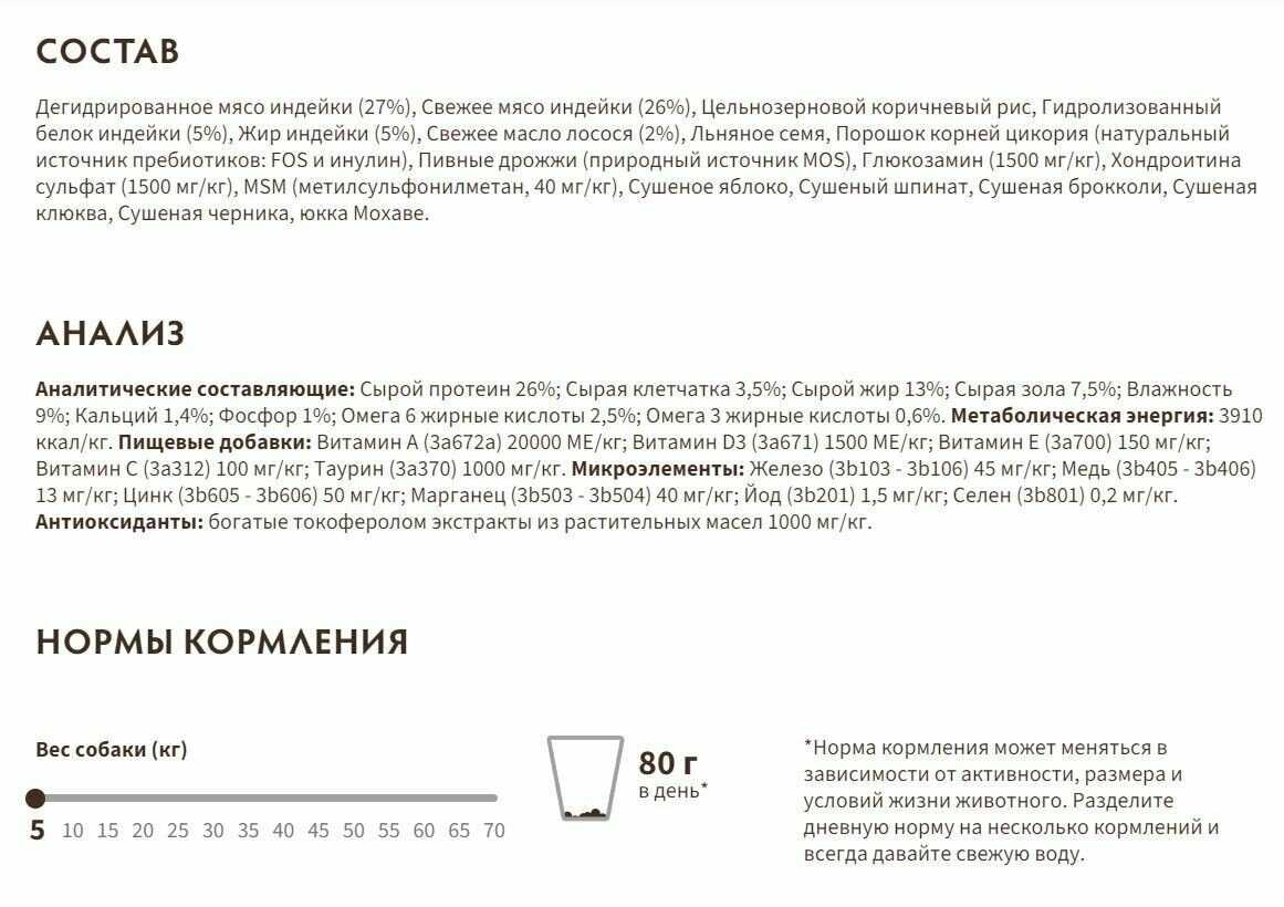 - Собаки могут терять вес при кормлении по таблице производителя.