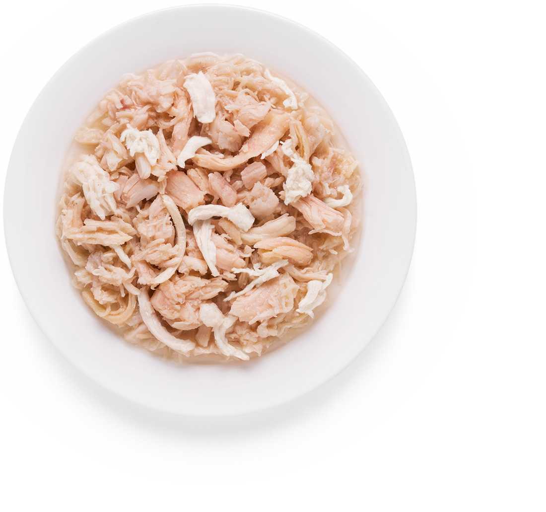 - + Хороший вкусный корм - волокна куриной грудки с сибасом. Рыбу, если честно, определить не смогла визуально, по запаху тоже не выделяется, но котам нравится. Умеренное количество бульона.