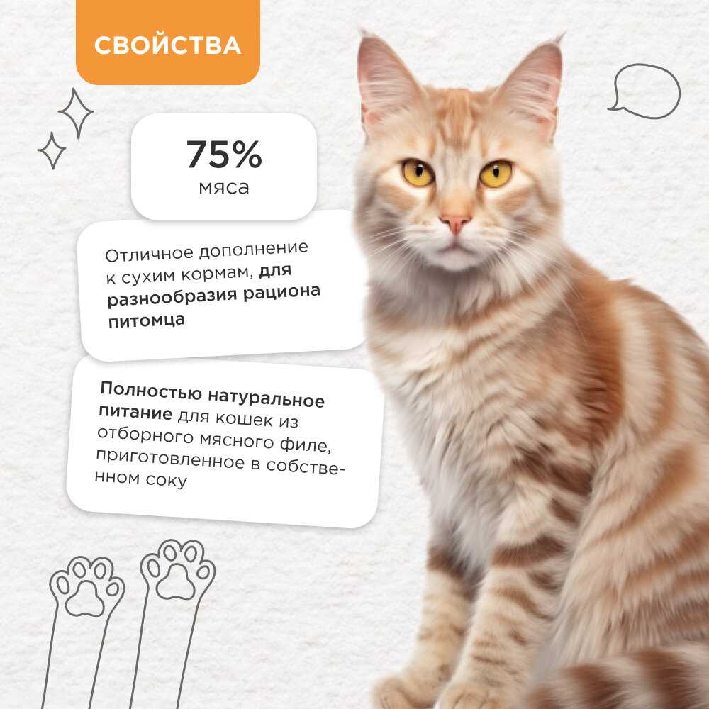 - + На сегодняшний день самое лучшее питание для моей кошки. Содержимое баночки в виде мелкопорубленного мяса птицы, а не пресованные куски чего-то резинового.
