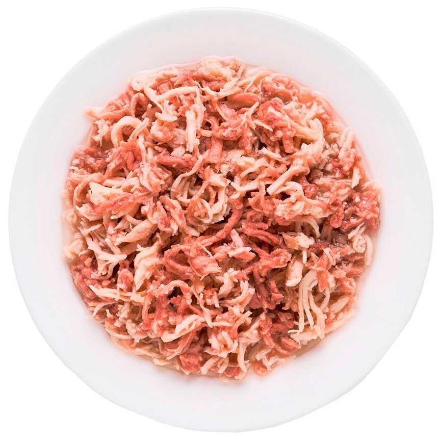 - + Прекрасный натуральный корм для кошек; волокна куриной грудки (белое мясо) с добавлением темного утиного мяса. В меру бульона - не слишком жидко, не чересчур плотно. Коты едят с удовольствием.