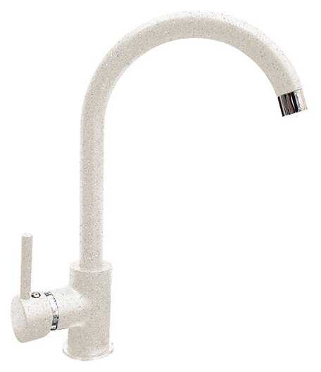 Нежный и теплый песочный оттенок понравится тем, кто хочет создать в комнате уют, но считает разные оттенки желтого уже устаревшим трендом. Смеситель довольно высокий, сам кран хоть и изонут, но расположен достаточно высоко. Если мойка не очень глубокая, такая конструкция крана сделает процесс мытья посуды куда удобнее, потому что позволит разместить в раковине большую и даже длинную посуду любой формы. Рычаг так же удобен, как и плоский широкий, который встречается чаще всего, просто он компактнее, и когда берешься мыть смеситель, понимаешь насколько это стало удобнее. Материал не требовательный в плане каких-то особых средств, подойдет обыкновенная бытовая химия.