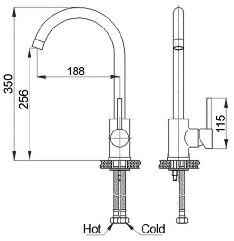 - - Кран очень высокий, из-за этого при мытье посуды очень сильно летят брызги (из-за того, что вода летит с высоты)